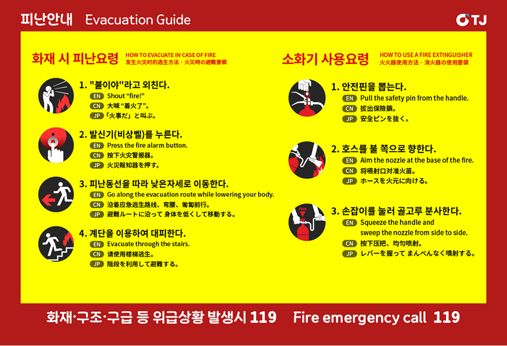이에, 업주님께서 영업장 내부 구조 및 피난 동선 관련 이미지를 제작한 후,